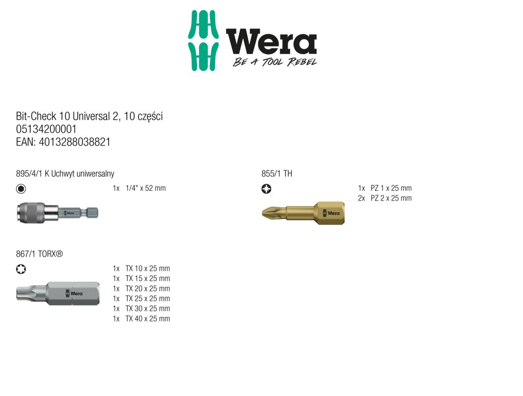 Bity zestaw 9 szt (TORX+PZ) Bit-Check + uchwyt uniwersalny WERA 05134200001