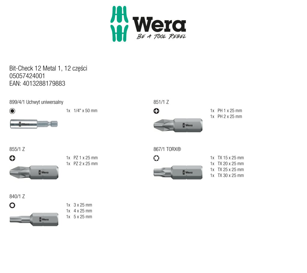 Bity zestaw Bit-Check 12 Metal 1 WERA 05057424001