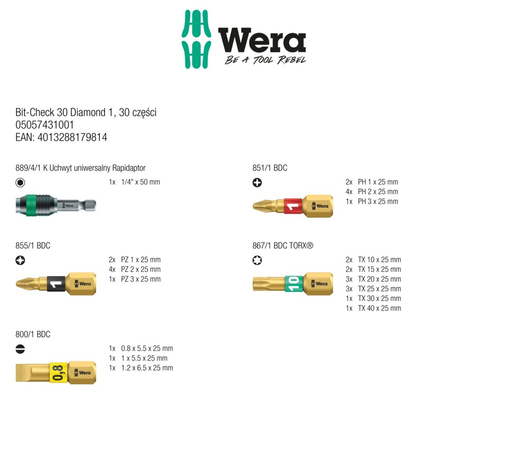 Bity zestaw Bit-Check 30 Diamond 1 WERA 05057431001
