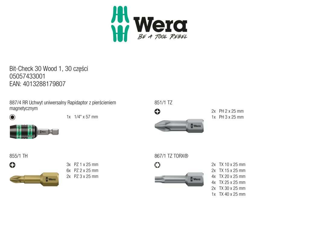 Bity zestaw Bit-Check 30 Wood 1 WERA 05057433001