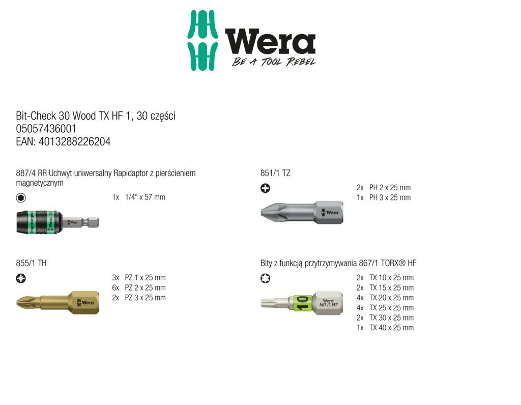 Bity zestaw Bit-Check 30 Wood TX HF 1, 30 część WERA 05057436001