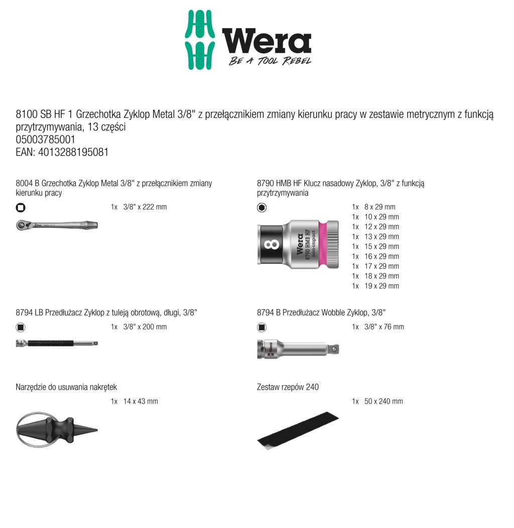 Grzechotka Zyklop Metal 3/8 zestaw 8100 SB HF 1 WERA 05003785001