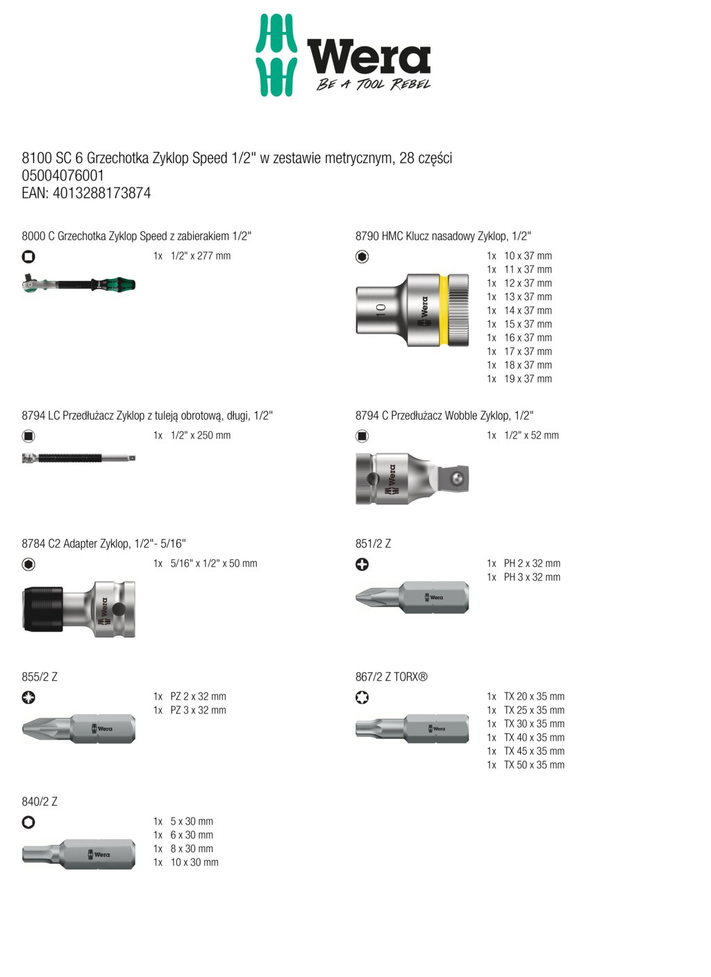 Grzechotka Zyklop Speed 1/2" w zestawie metrycznym 8100 SC 6 WERA 05004076001