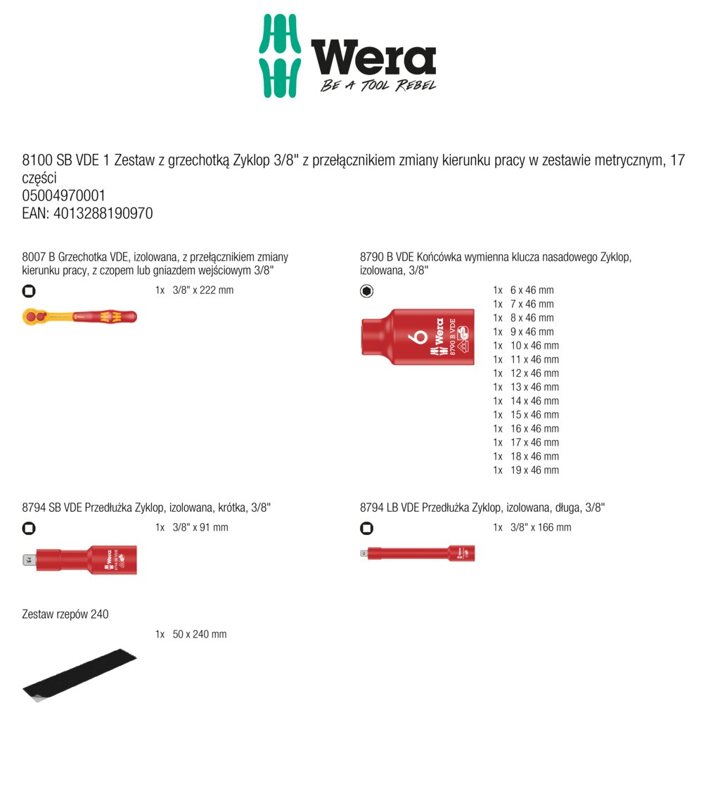 Grzechotka Zyklop zestaw 3/8" z przełącznikiem 8100 SB VDE 1 WERA 05004970001