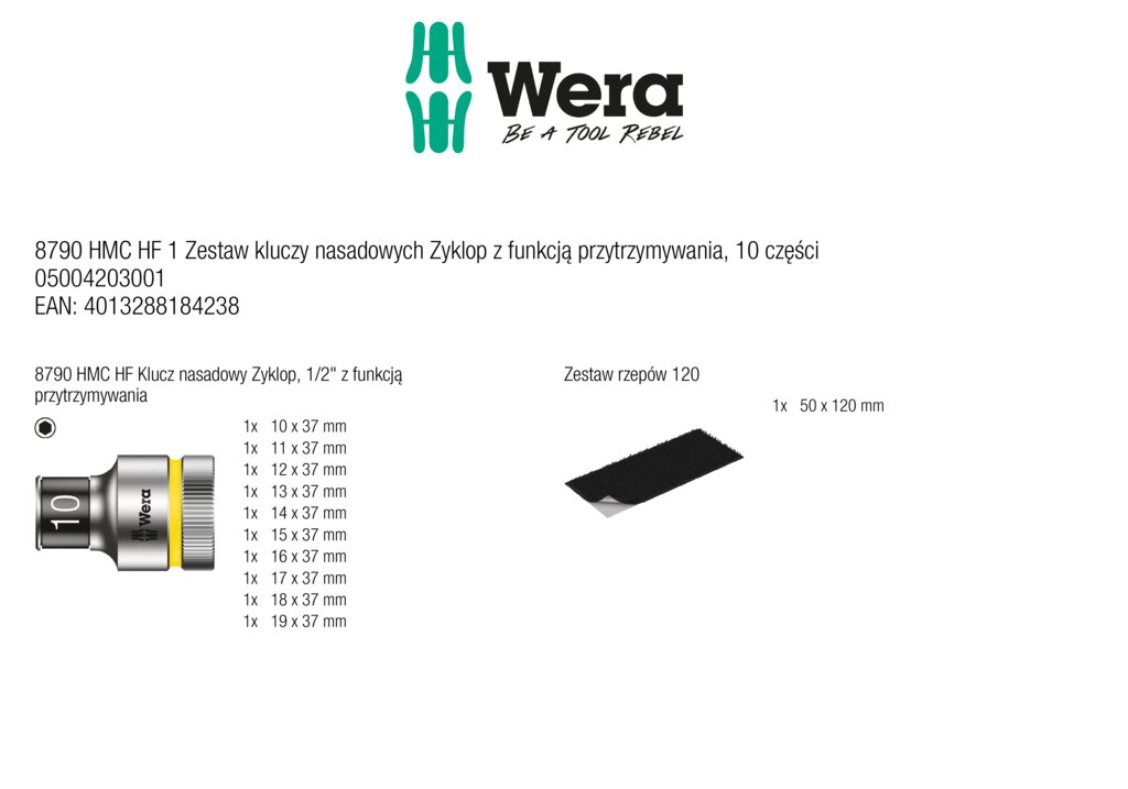 Klucze nasadowe 10-19 mm 1/2" zestaw 10 cz. "Zyklop" Wera 8790 HMC HF 1 WERA 05004203001