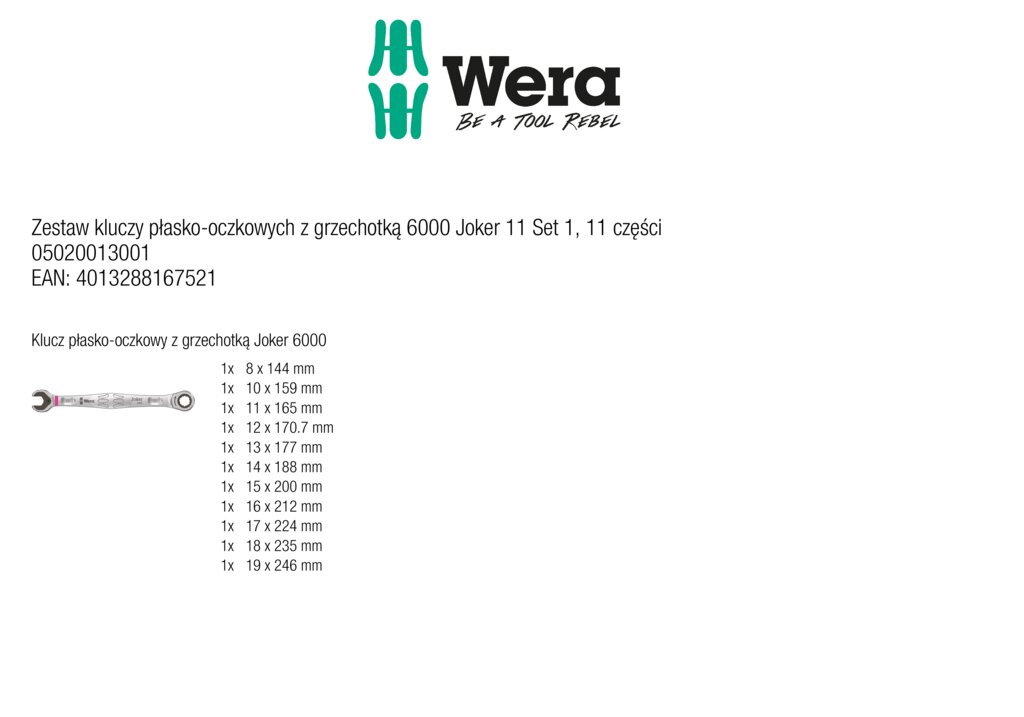 Klucze z Grzechotką duży zestaw 8 - 19 mm Joker WERA 05020013001