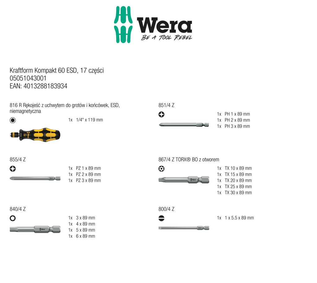 Kraftform Kompakt 60 ESD zestaw 17 częściowy WERA 05051043001