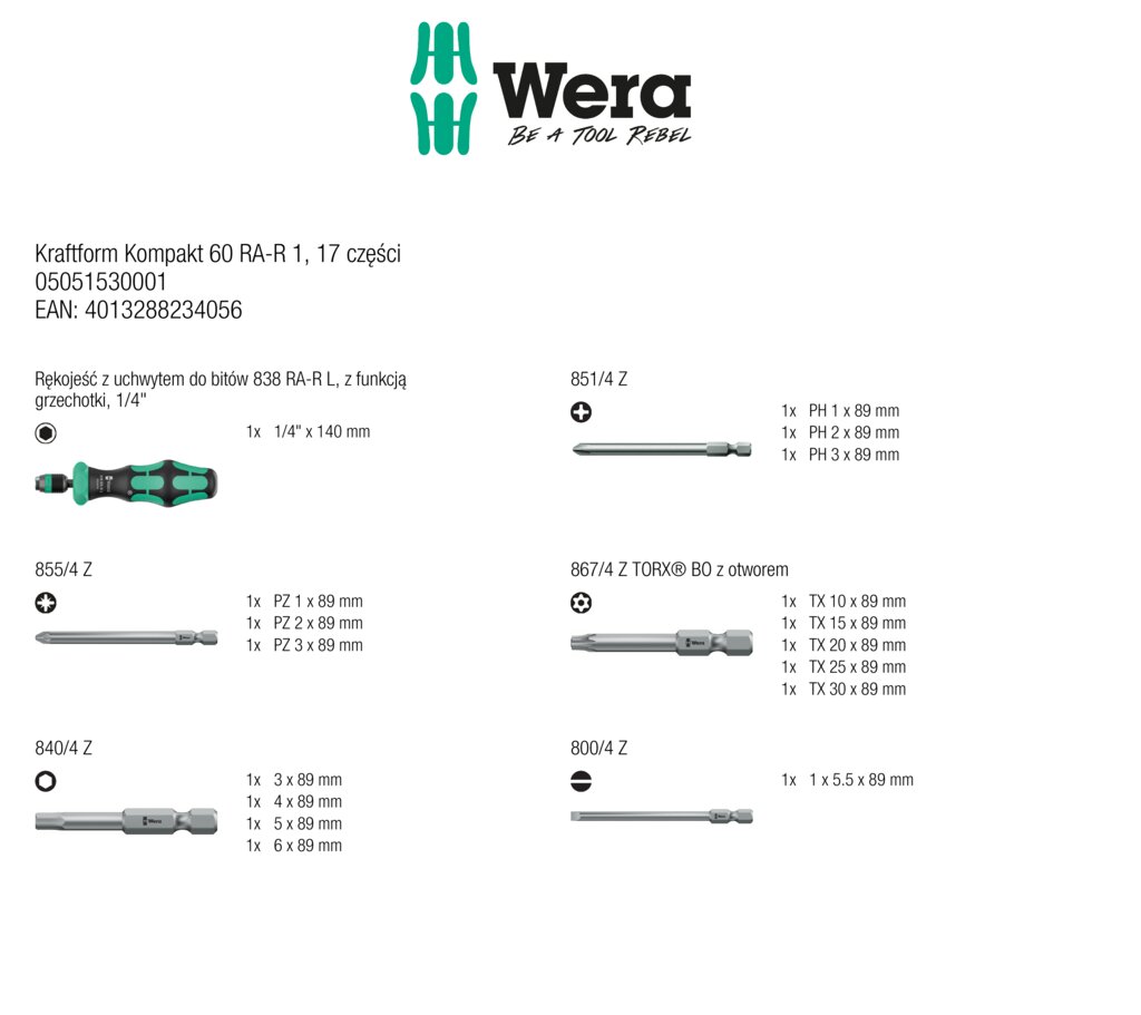 Kraftform Kompakt 60 RA-R 1, 17 części WERA 05051530001