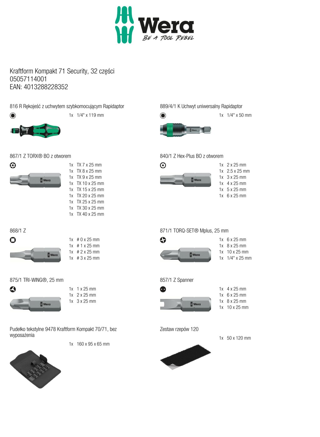 Kraftform Kompakt 71 Security, 32 części WERA 05057114001
