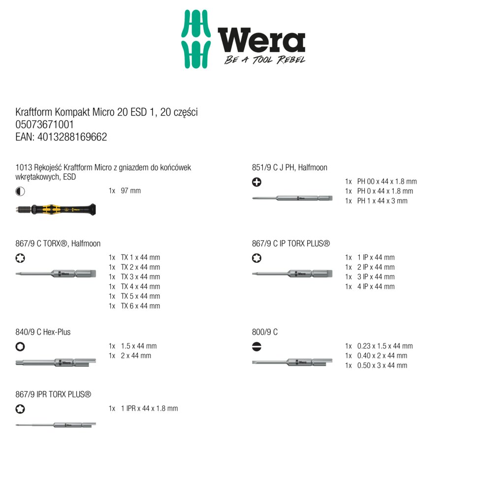 Wkrętaki śrubokręty precyzyjne PH, TX, TX PLUS, PŁ, IMBUSOWE Micro-Set ESD/20 SB WERA 05073671001