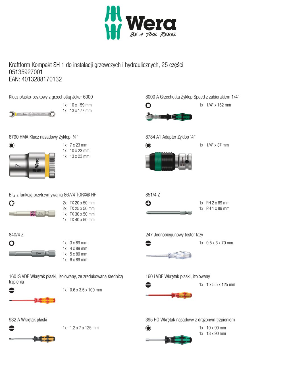 Kraftform Kompakt SH 1 Instalacje sanitarne/grzewcze WERA 05135927001