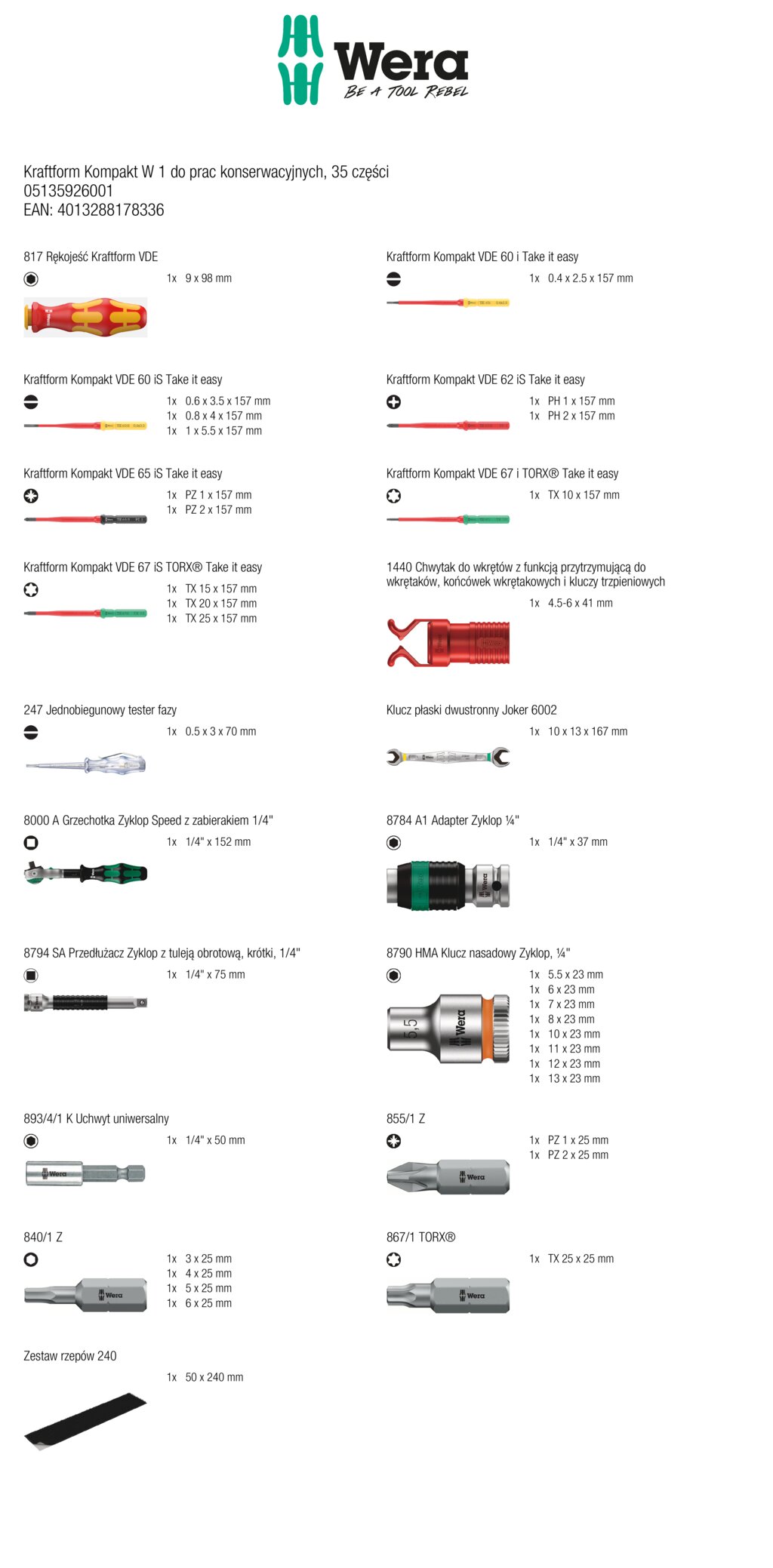 Kraftform Kompakt W 1 do prac konserwacyjnych - zestaw 35 narzędzi WERA 05135926001
