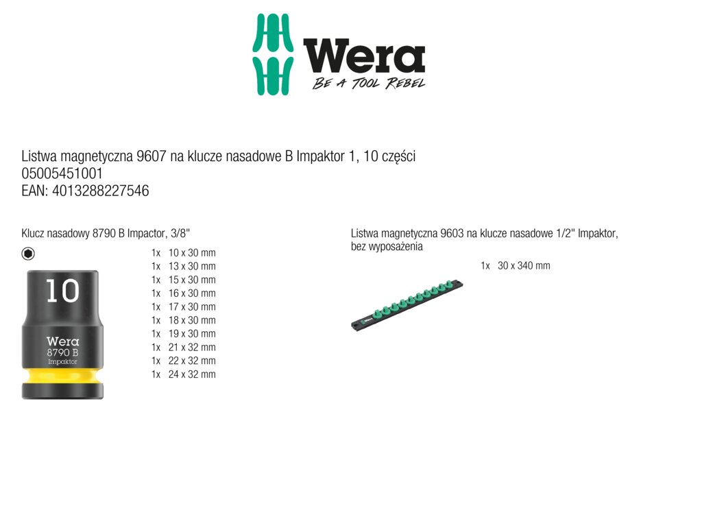 Listwa magnetyczna 9607 na klucze nasadowe B Impaktor 1, 10 części WERA 05005451001