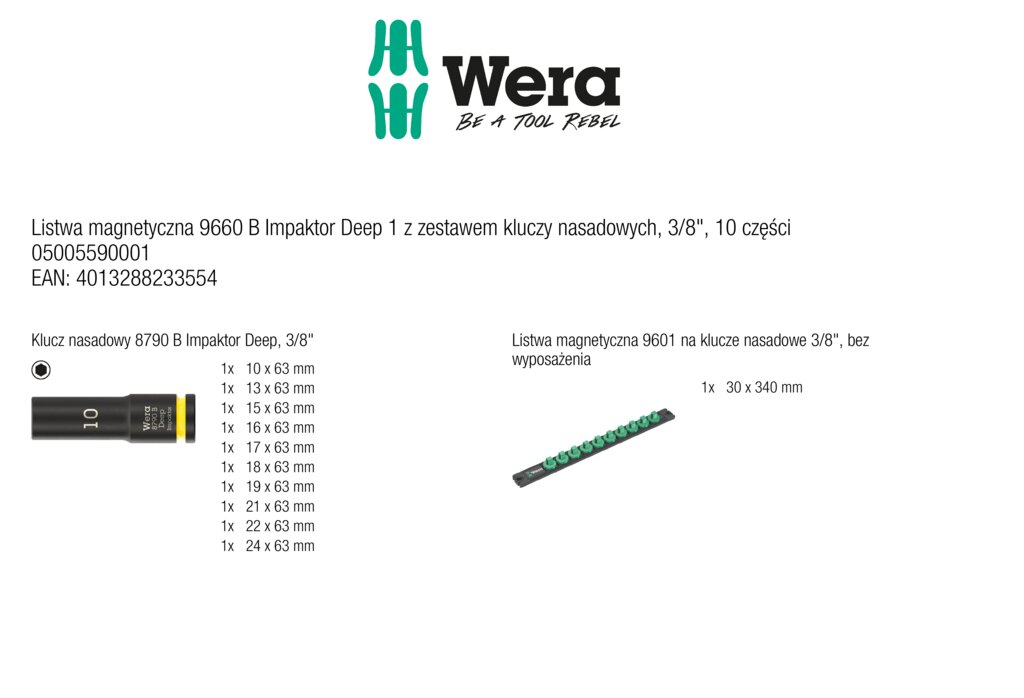 Listwa magnetyczna 9660 B Impaktor Deep 1 z zestawem kluczy nasadowych, 3/8", 10 części WERA 05005590001