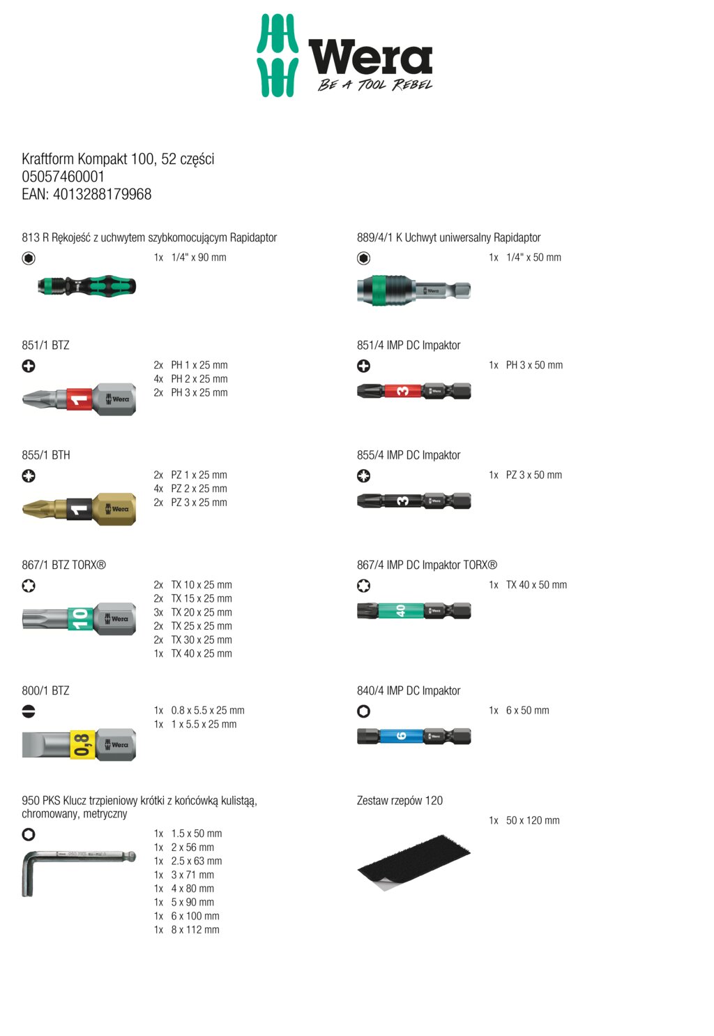 Narzędzia wkrętakowe śrubokręt w zestawie Wera Kraftform Kompakt 100 Specjalistyczny zestaw dla stolarzy WERA 05057460001