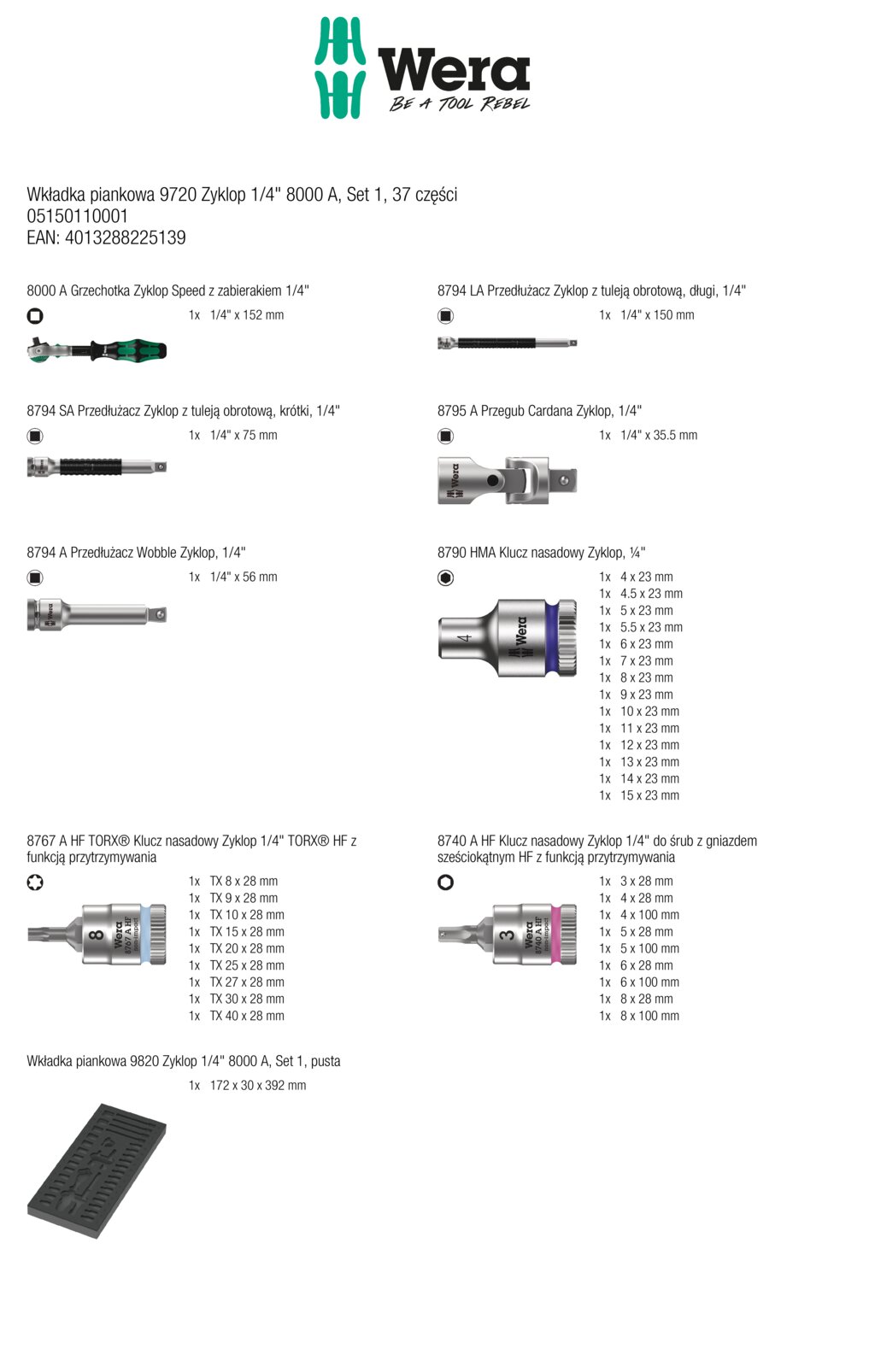 Wkładka piankowa 9720 8000 A Zyklop WERA 05150110001