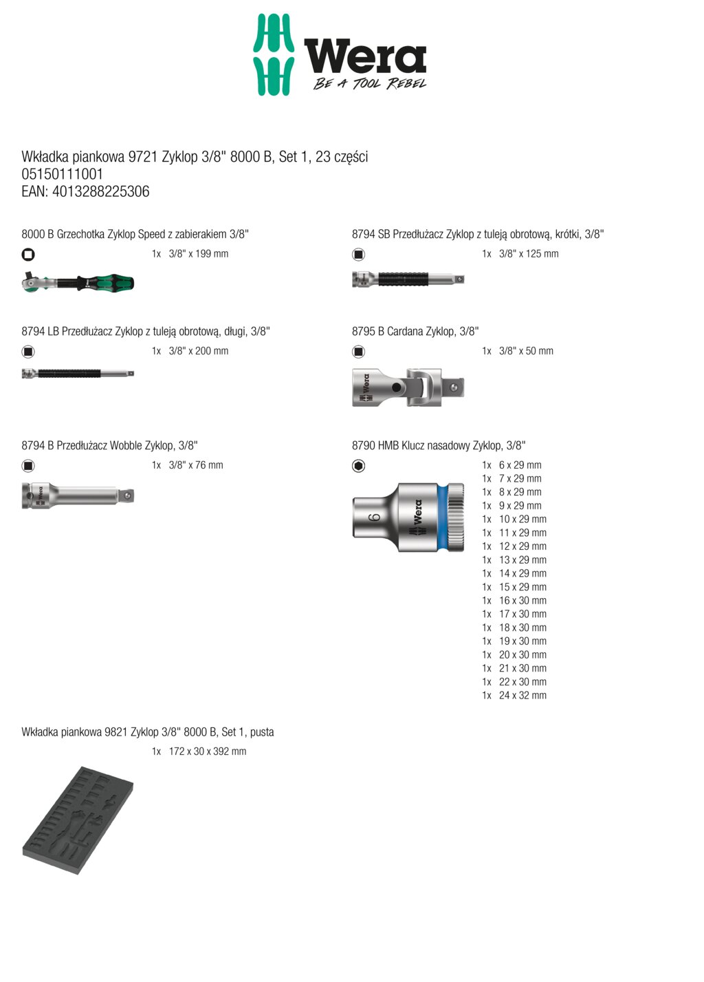 Wkładka piankowa 9721 8000 B Zyklop 3/8" WERA 05150111001