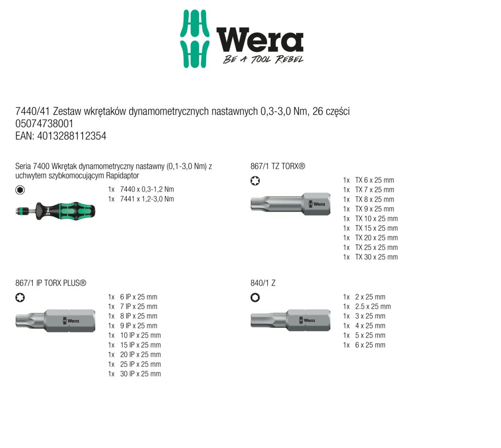 7440/41 Zestaw wkrętaków dynamometrycznych nastawnych 0,3-3,0 Nm, 26 części
