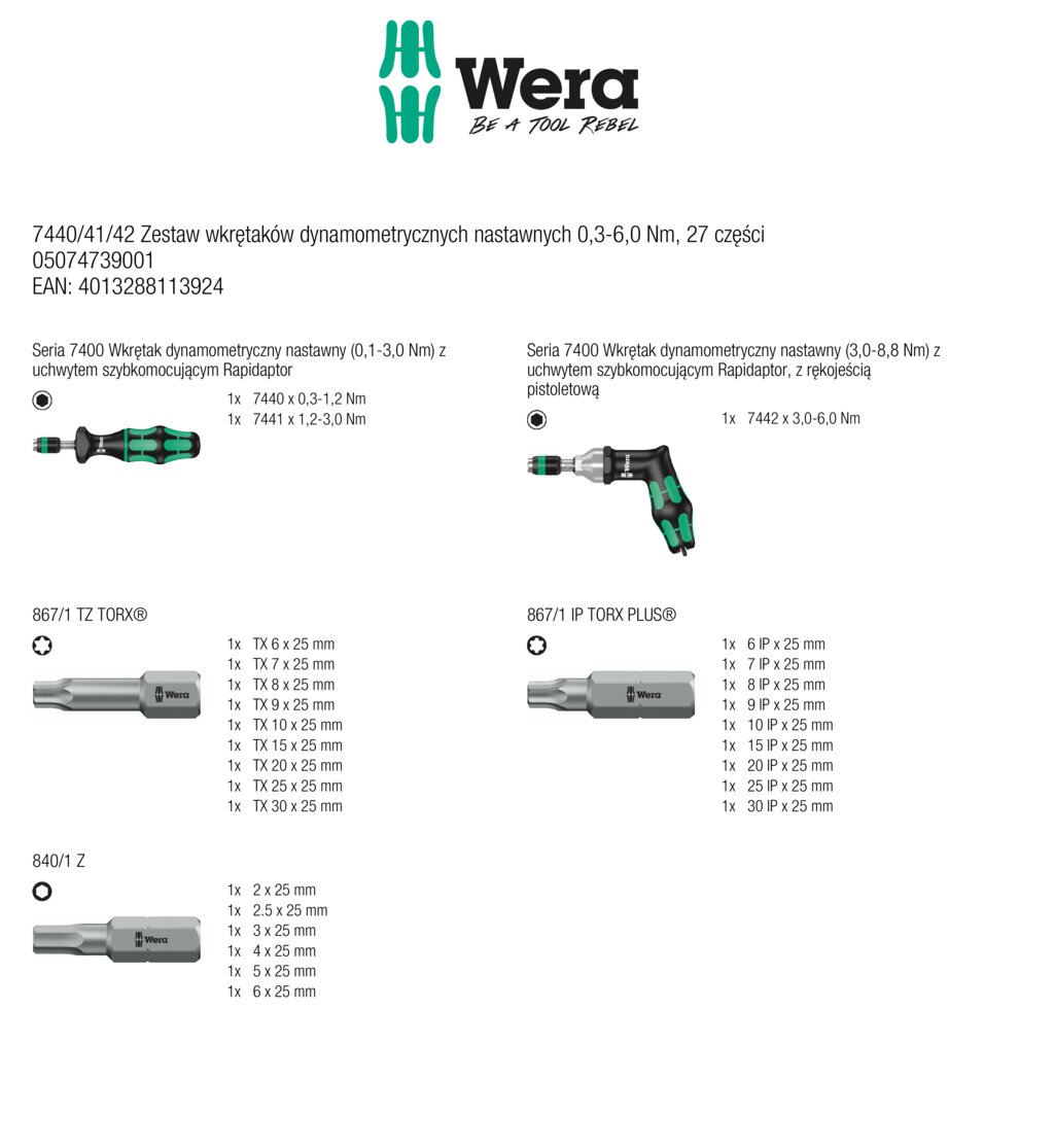 7440/41/42 Zestaw wkrętaków dynamometrycznych nastawnych 0,3-6,0 Nm, 27 części