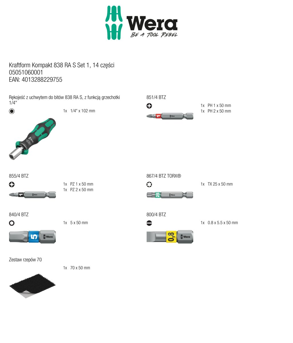 Wkrętaki Kraftform Kompakt 838 RA S Set 1, 14 część WERA 05051060001