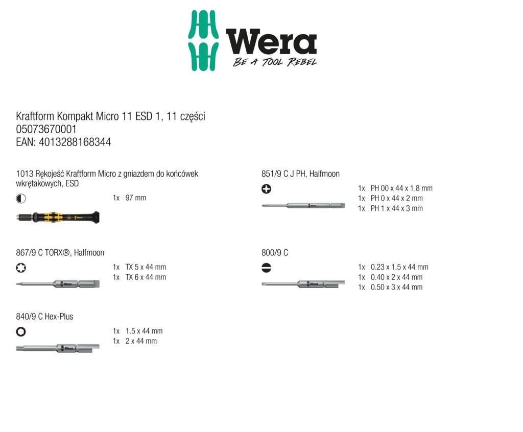 Wkrętaki śrubokręty precyzyjne Micro-Set PH, Płaskie, TORX, Imbusowe, ESD WERA 05073670001
