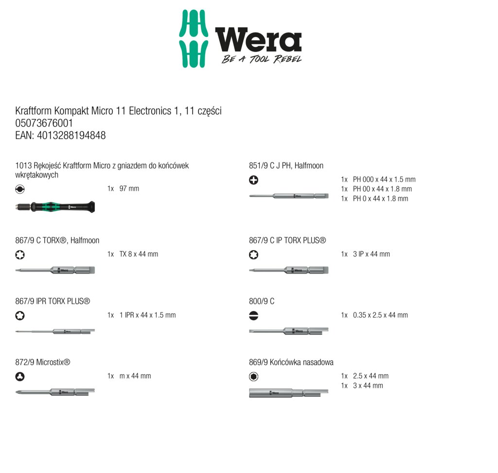 Wkrętaki śrubokręty precyzyjne Kraftform Kompakt Micro 11 Electronics 1 05073676001 WERA