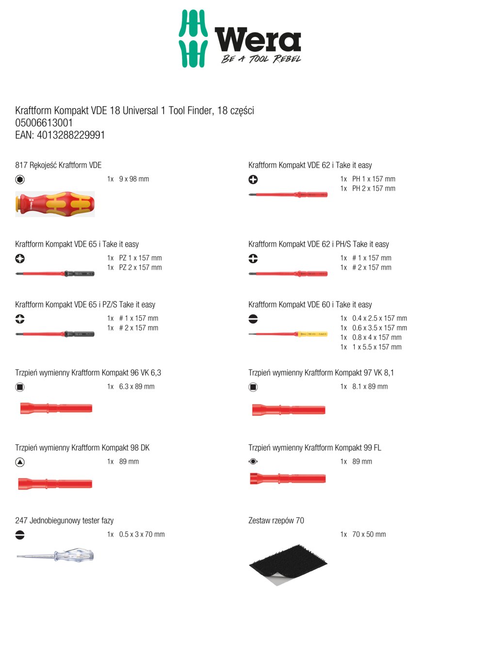 Wkrętaki Śrubokręty Izolowane Zestaw Kraftform Kompakt VDE 18 Universal 1 WERA 05006613001