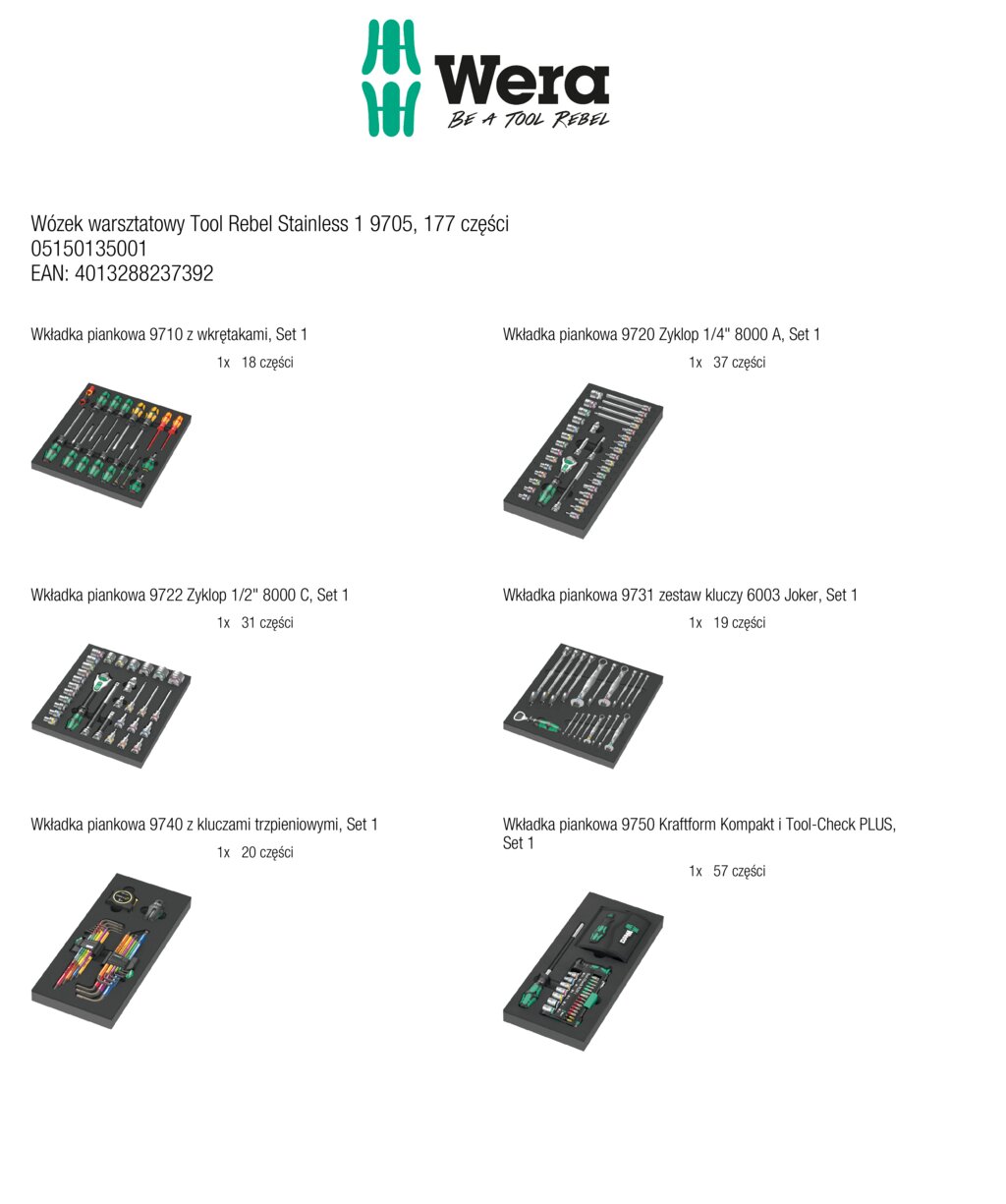 Wózek warsztatowy Tool Rebel Stainless 1 9705, 177 części WERA 05150135001