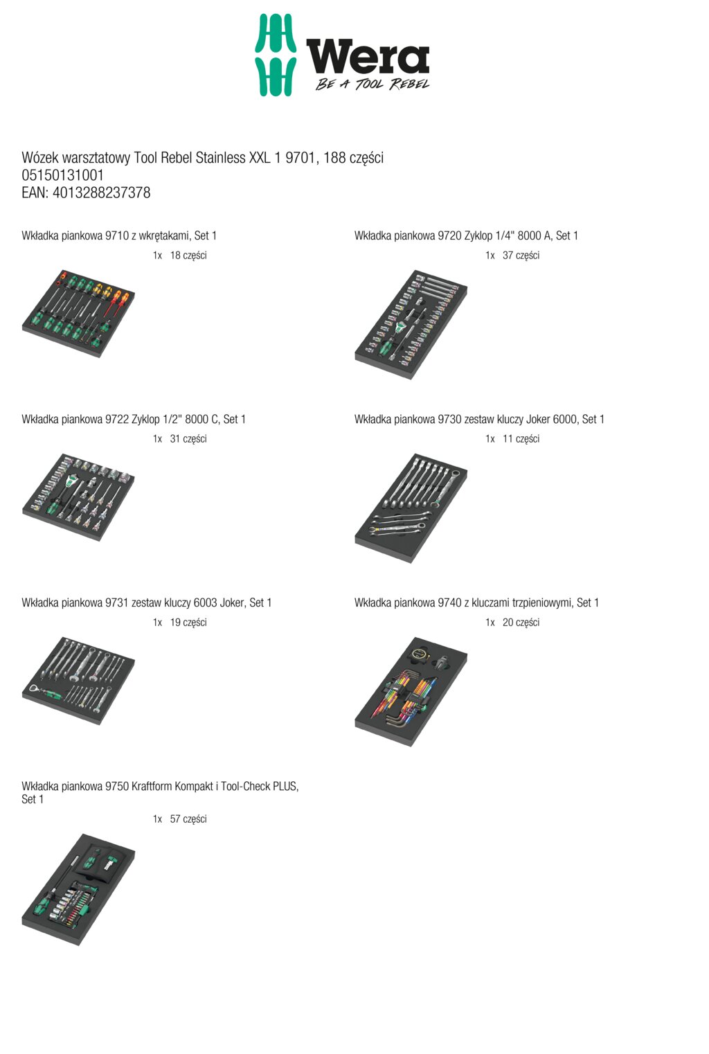 Wózek warsztatowy Tool Rebel Stainless XXL 1 9701, 188 części WERA 05150131001