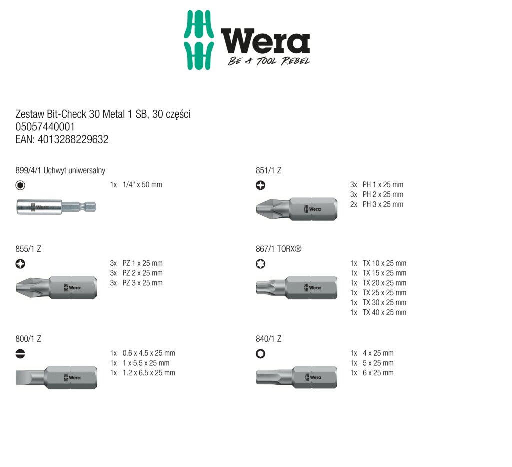 Zestaw Bit-Check 30 Metal 1 SB, 30 część WERA 05057440001