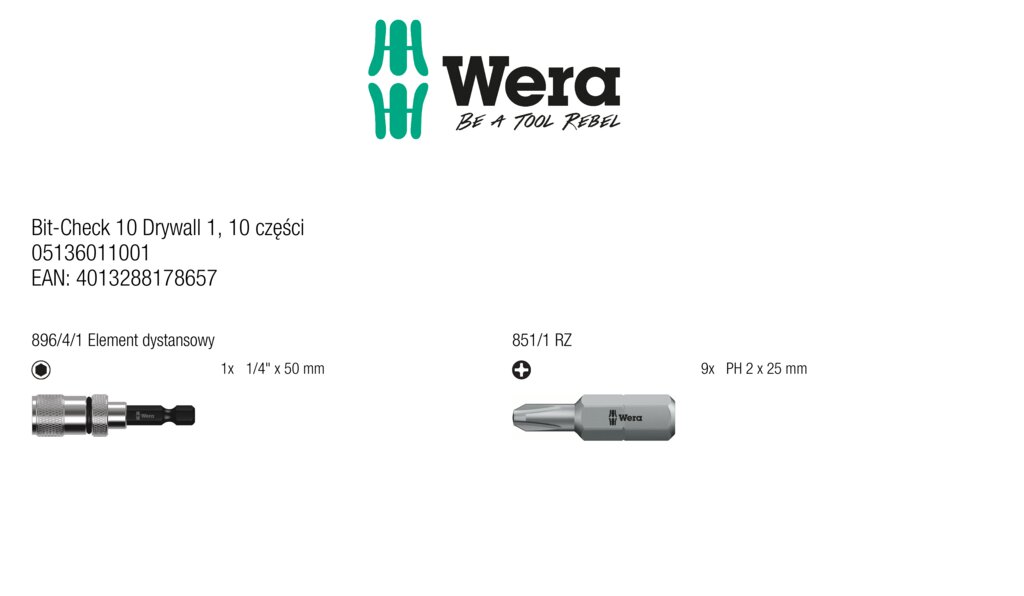 Zestaw bitów z ogranicznikiem głębokości Bit-Check 10 Drywall 1 WERA 05136011001