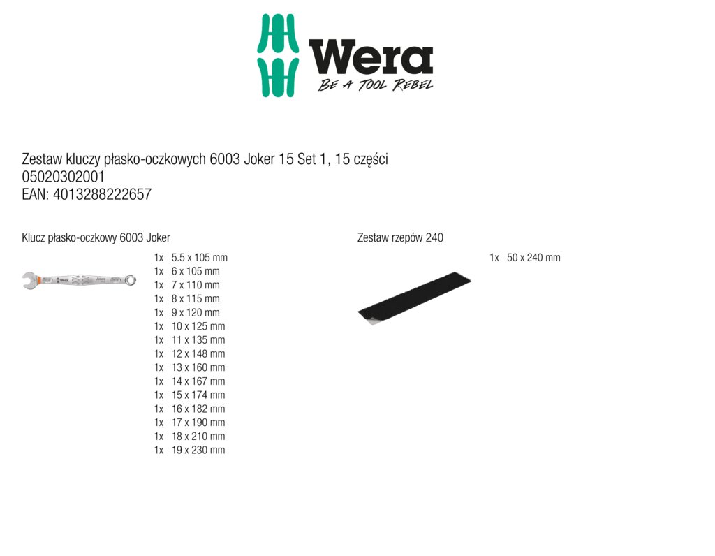 Zestaw kluczy płasko-oczkowych 6003 15 Joker WERA 05020302001