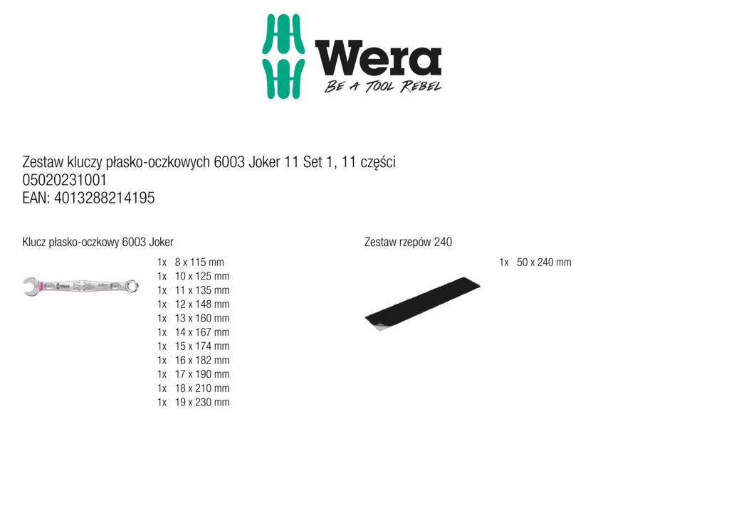 Zestaw kluczy płasko-oczkowych 6003 Joker 11 Set 1 WERA 05020231001