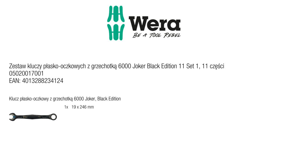 Zestaw kluczy płasko-oczkowych z grzechotką 6000 Joker Black Edition 11 Set 1, 11 części WERA 05020017001