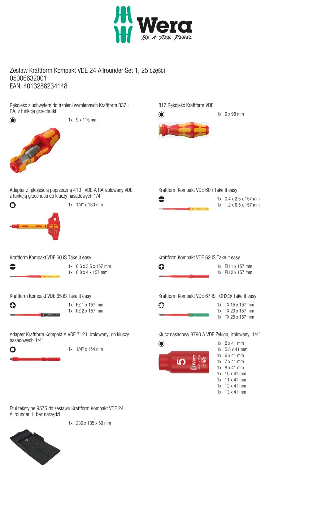 Zestaw Kraftform Kompakt VDE 24 Allrounder Set 1, 25 części WERA 05006632001