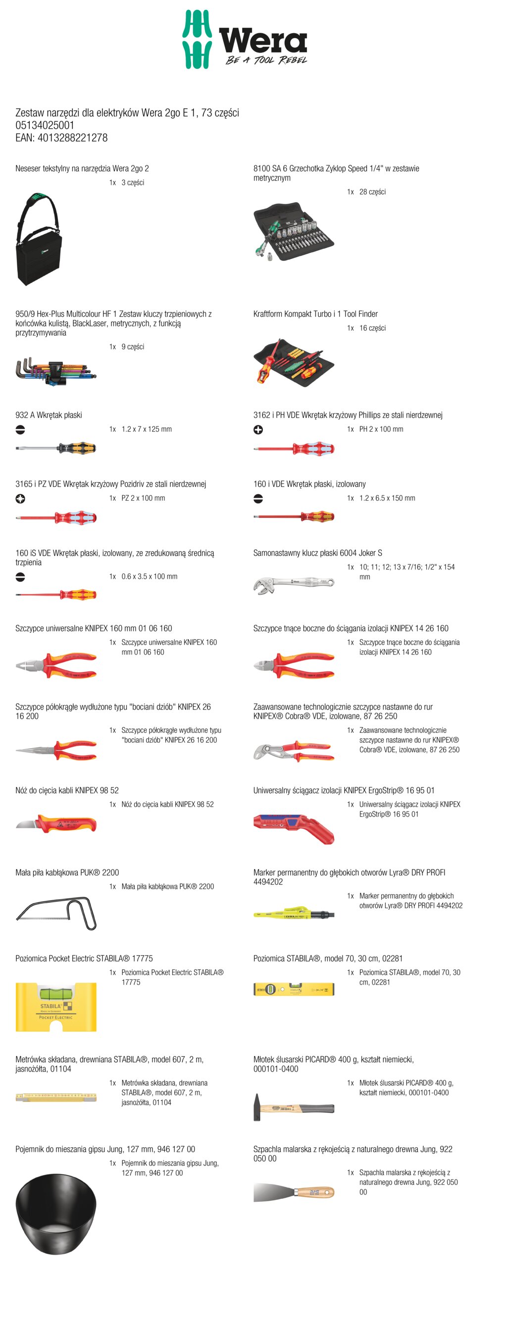 Zestaw narzędzi dla elektryków Wera 2go E 1, 73 części