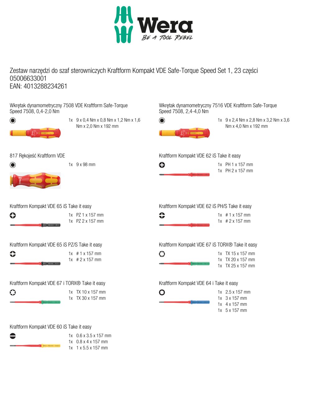 Zestaw narzędzi do szaf sterowniczych Kraftform Kompakt VDE Safe-Torque Speed Set 1, 23 części WERA 05006633001