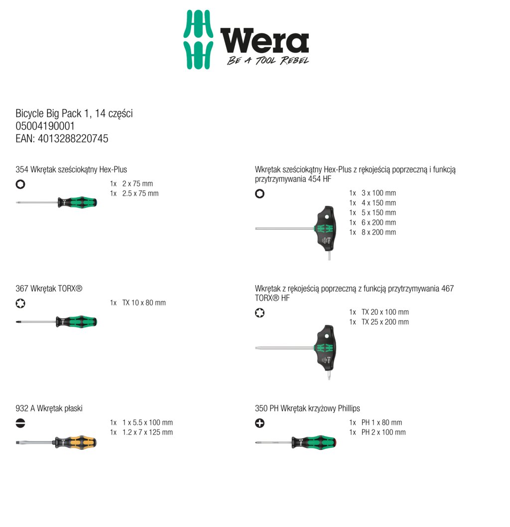 Zestaw wkrętaków śrubokrętów Bicycle Big Pack 1, 14 część WERA 05004190001