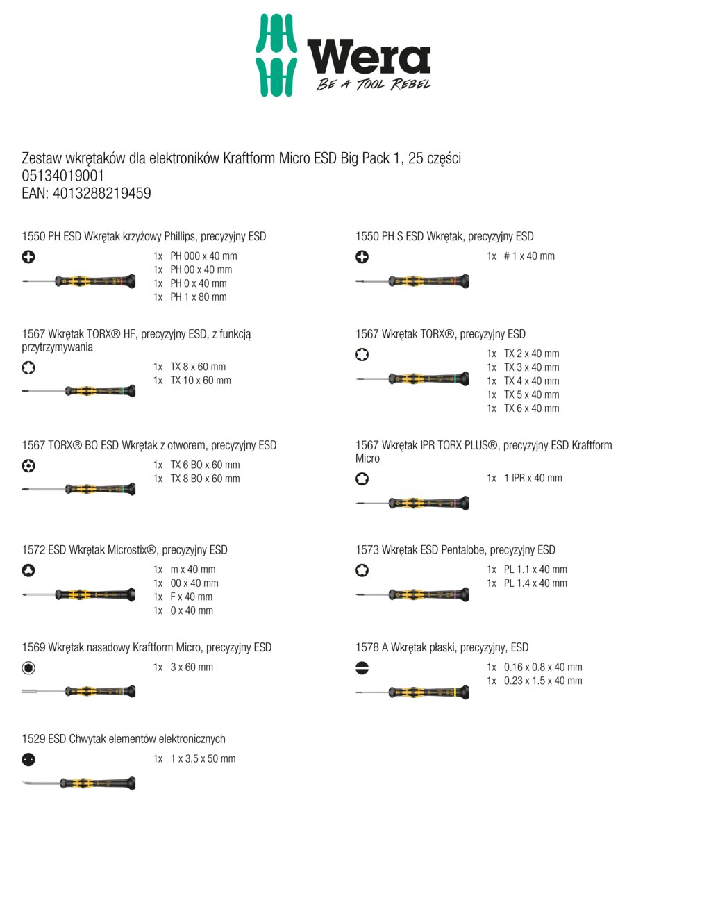 Zestaw wkrętaków śrubokrętów dla elektroników Kraftform Micro ESD Big Pack 1, 25 część WERA 05134019001