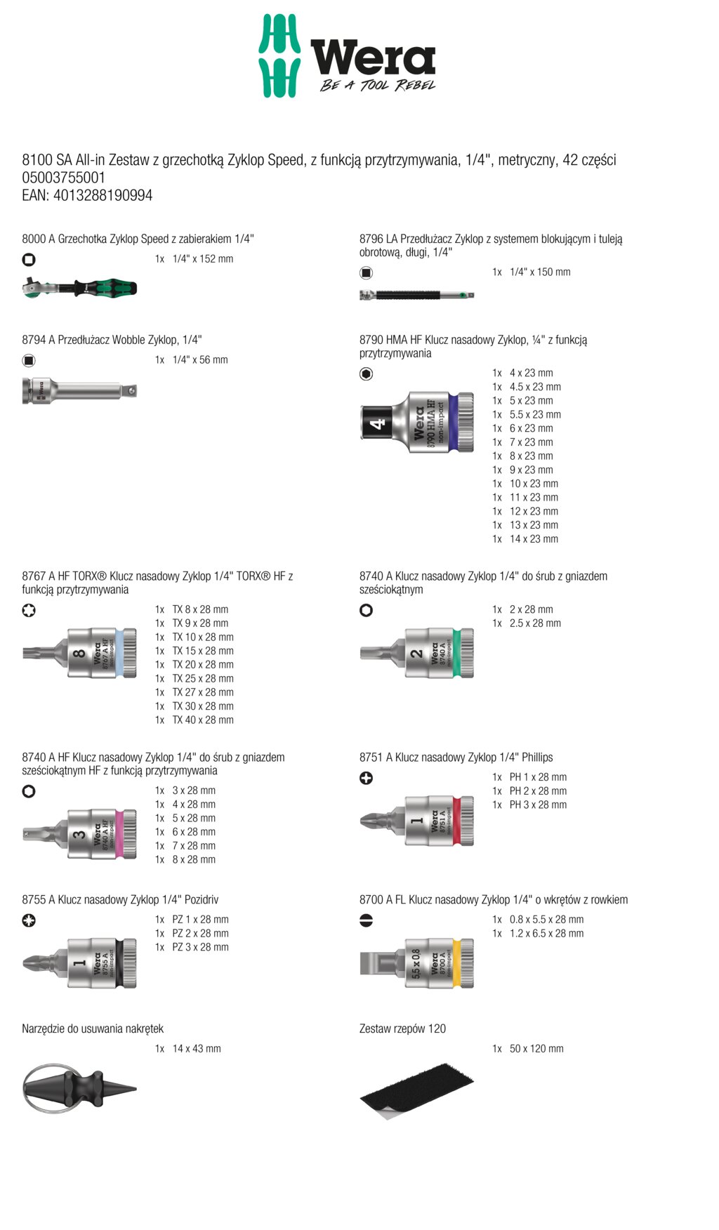 Zestaw z grzechotką Zyklop Speed All-in 8100 SA WERA 05003755001